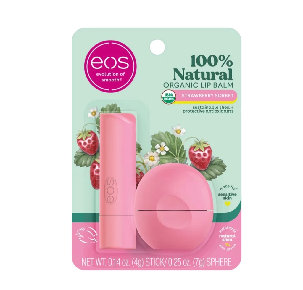 Descubra um bálsamo labial 100% natural, orgânico e delicioso. O sabor do bálsamo labial Sorbet de morango tem gosto de sorvete congelado feito com morangos de verão amadurecidos na videira. Nosso bálsamo labial orgânico certificado pelo USDA, recomendado por dermatologistas, é formulado para peles sensíveis e feito com manteiga de karité calmante, óleo de coco sem peso e antioxidantes protetores. Os bálsamos labiais eos usam ingredientes de origem sustentável que fornecem umidade o dia todo e certamente deixarão seus lábios suaves, hidratados e com um sabor delicioso o dia todo.