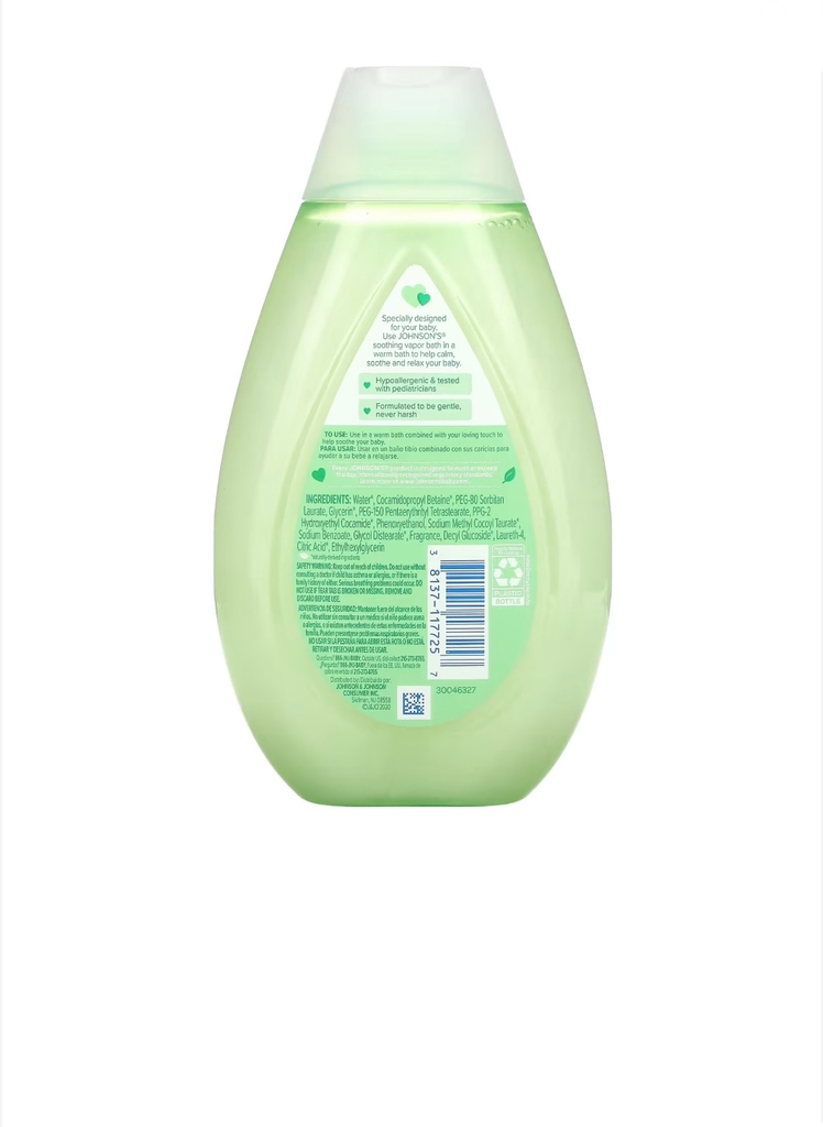 Para um banho morno e gostoso, o Soothing Vapor Bath da JOHNSON'S age com um vapor descongestionante. Enriquecido com alecrim, eucalipto e mentol, trazendo conforto aos sintomas da gripe como a tosse e a rouquidão, e ainda ajuda a desentupir o narizinho do bebê.