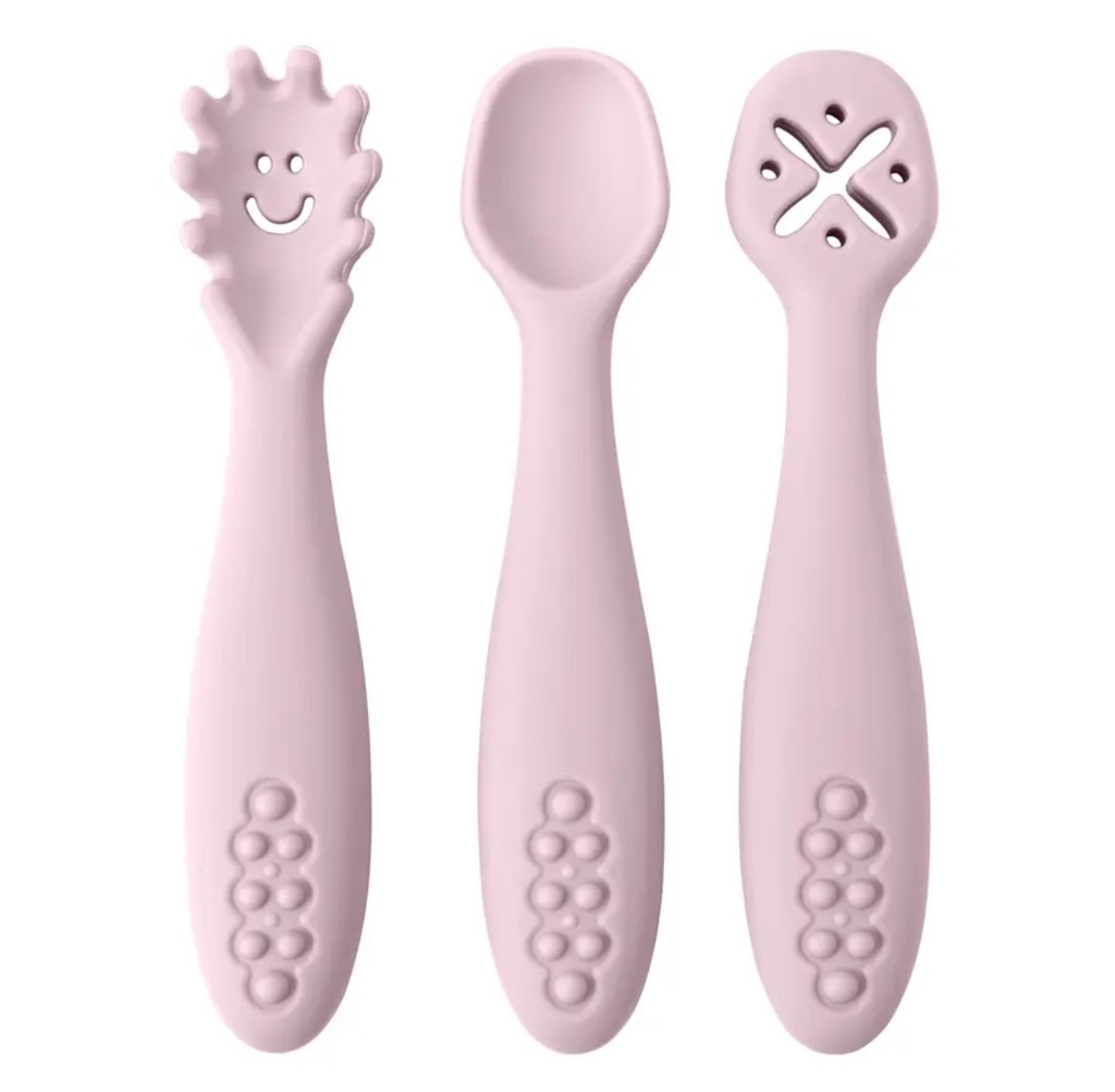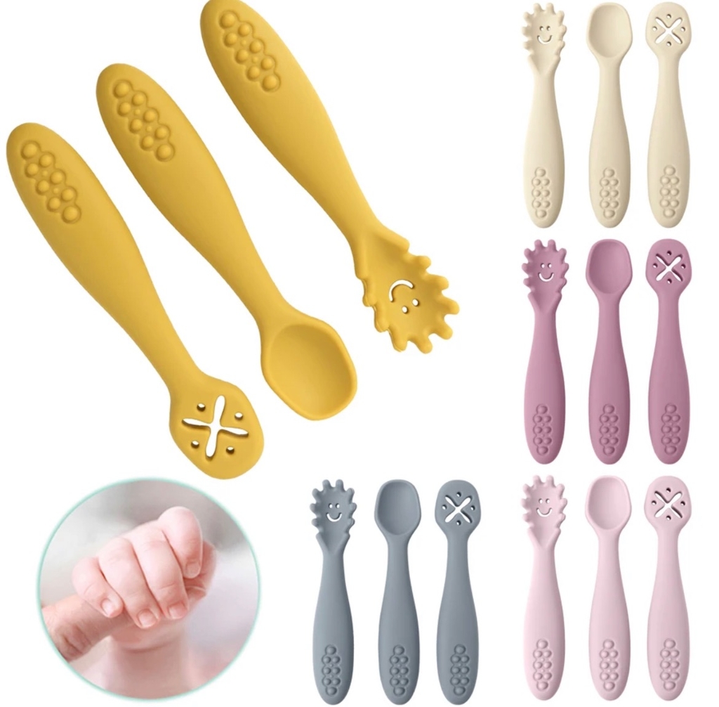 Kit com 3 colheres de aprendizagem de alimentação para bebês, tamanho ideal para as mãozinhas do bebê na fase de treinamento.