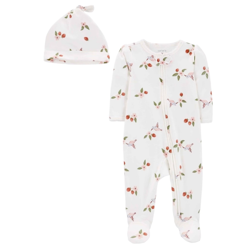 O Macacão bebê com touca beija-flor branco Carter's confeccionado em material macio e aconchegante, com zíper frontal, manga longa e estampa floral. É ideal para todos os momentos. O modelo esbanja fofura e delicadeza, invista, sua baby merece. Acompanha touca.