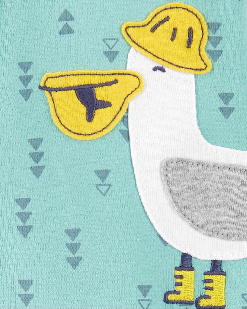O Macacão pijama bebê pelicano Carter's veio para deixar seu filho ainda mais fofinho e confortável. A peça é feita de algodão, conta com segurança por conta de seu fechamento por zíper com martingale e seu charminho está no patch aplicado de bichinhos. Uma verdadeira fofura! Ideal tanto para o dia, quanto para ele descansar. Aposte!