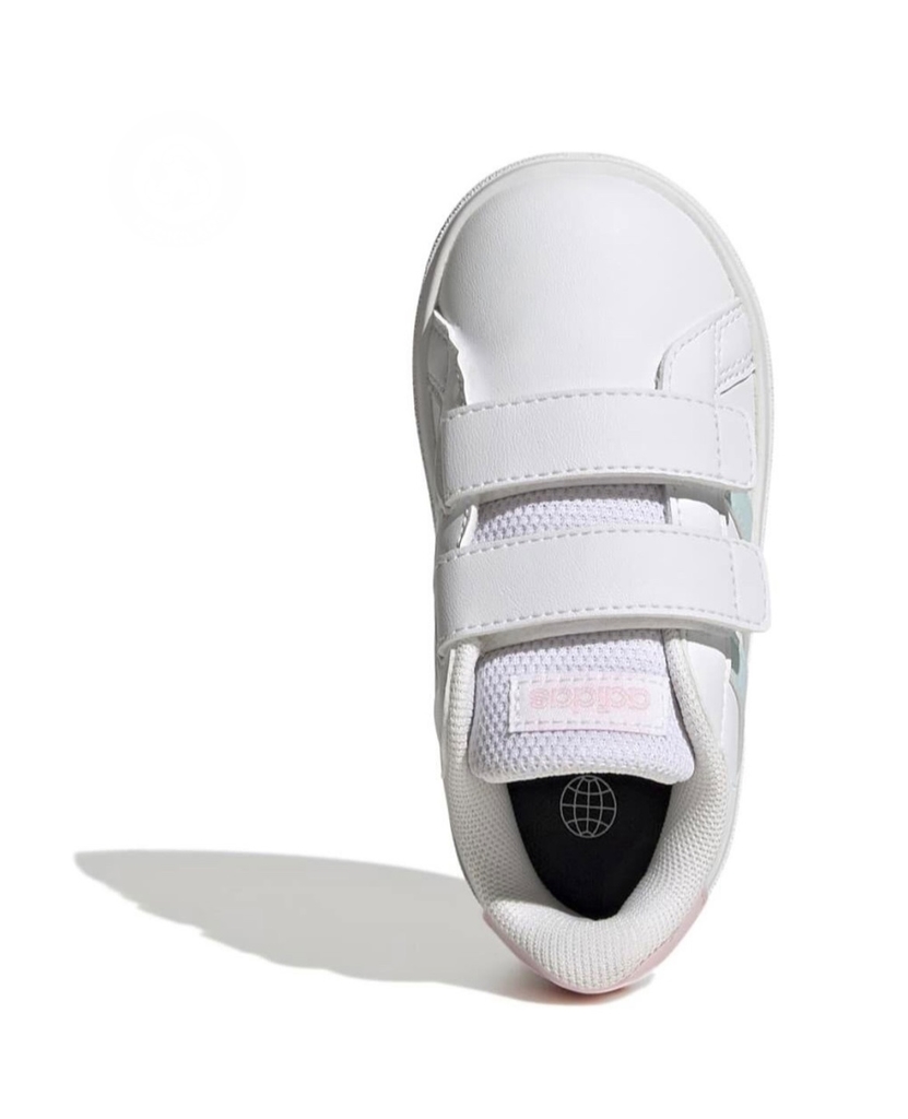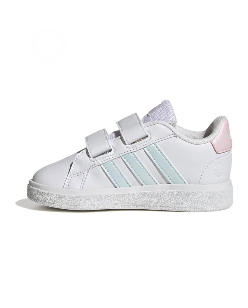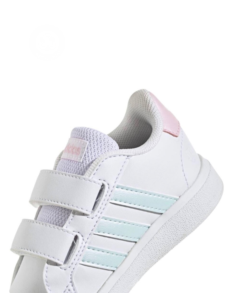 Com cores delicadas e brilhantes nas faixas laterais sem perder o estilo esportivo e divertido que combina com tudo! O tênis infantil adidas Grand Court é inspirado em um tênis de basquete clássico da marca e traz visual atualizado com um mix de cores especial. Escolha certa para caprichar no estilo da criançada do dia a dia ao lazer, sempre com o conforto que não pode faltar! Tudo isso com a praticidade do fechamento por tiras aderentes ajustáveis. Esta versão contém no mínimo 50% de materiais reaproveitados no cabedal, iniciativa que tem como objetivo reduzir a geração de resíduos plásticos. Garanta já!