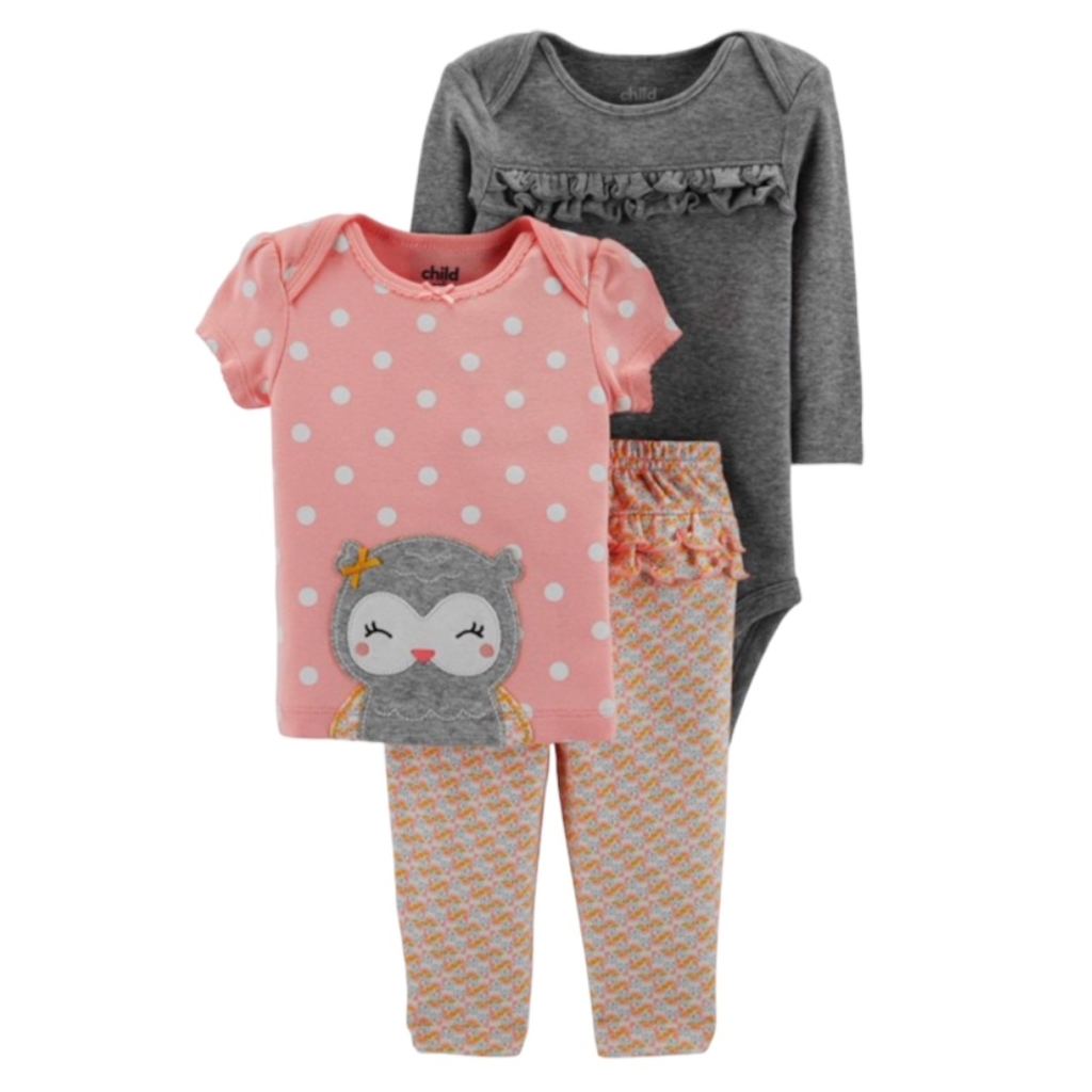O Trio corujinhas floral Carter's é ideal para o dia a dia e esbanjam charme e fofura. Composto por dois bodies de manga curta com ombros transpassados e uma calça com cós de elástico. Perfeito para o dia a dia dos papais e mamães os itens combinam perfeitamente entre si e também podem compor outros diversos looks. Seu bebê ficará confortável e estiloso, invista!